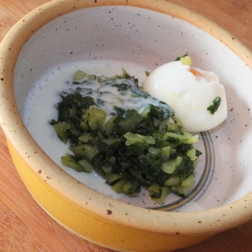 Blattspinat-Kartoffel-Stampf mit Ei
